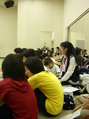 19日ゎ・・ よかっつさんの代わりに、19日のことを、ちょっと書いてみようかと、思います♪ まず、ゆっくりウォーミンブアップを、しました! そのあとゎ、いよいよ振り付け☆★ ぃや、なかなか大変でしたよぉ! 人もいっぱいですし・・・。 後ろからだと、なかなか見えなかったりして・・!! 振り付けをしたあと、時間があったので、 ウォーキング(?)4列ずつ並んで、舞台を行ったり来たり!するやつです♪ という、流れでした☆★