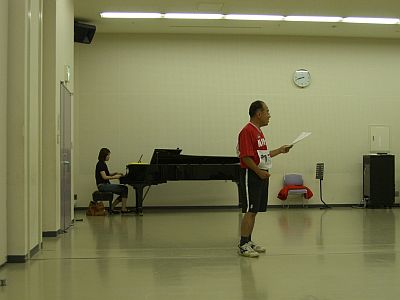 6月19日は大原先生の特別レッスンで、ダンス課題の発表と練習があったそうですね。私は参加していないのでよくわかりません。誰か詳しく書いてください。 6月20日はキャスティングオーディションが行われました。ウォーミングアップの後、ダンス課題の復習を4回ほど行いました。そして、オーディションは、ダンス → 歌 → 芝居 の順でそれぞれ行われました。 今回のダンス課題はかなり自由に踊られるようになっていました。でもそのために、いかに自分がいつもダンスをしっかり練習していないかがよくわかるようになっていた気がします。ダンスと呼べないまでも、曲に合わせて動く、それだけでさえ満足にできませんでした。 歌の課題は前に書いていたとおり、”Where is love?”と”What I did for love.”でした。今回は主に、新しいメンバーの歌唱力を見るためのものだったので、全員は歌っていません。しかし、過去からのメンバーも一部歌っていましたね。「期待の新人」、と呼べそうな人や、「前より断然うまくなった」と言えるひともいて、正直焦っています。 芝居のオーディションは、各グループに分かれての短編作品発表でした。それぞれかなり違った雰囲気の作品を作ってきていました。「そうきたか」と思うもの、「きれいにまとめてきたな」と思うもの、いろいろありました。私はこういうタイプの稽古の仕方が好きなので、すごく楽しめました。これからもこんなことができる機会をもっと持ちたいですね。 全体的に見て、さすがにみんな成長しているようですね。いままでほとんど気付かなかったのですが…。でも、それでもまだまだだ、と言っておきます。 P.S. はちみつさん、ダンス課題を教えていただきありがとうございました。せっかく教えてもらったのにオーディションではしっかり踊れなかったのがすごく残念ですが…。 |